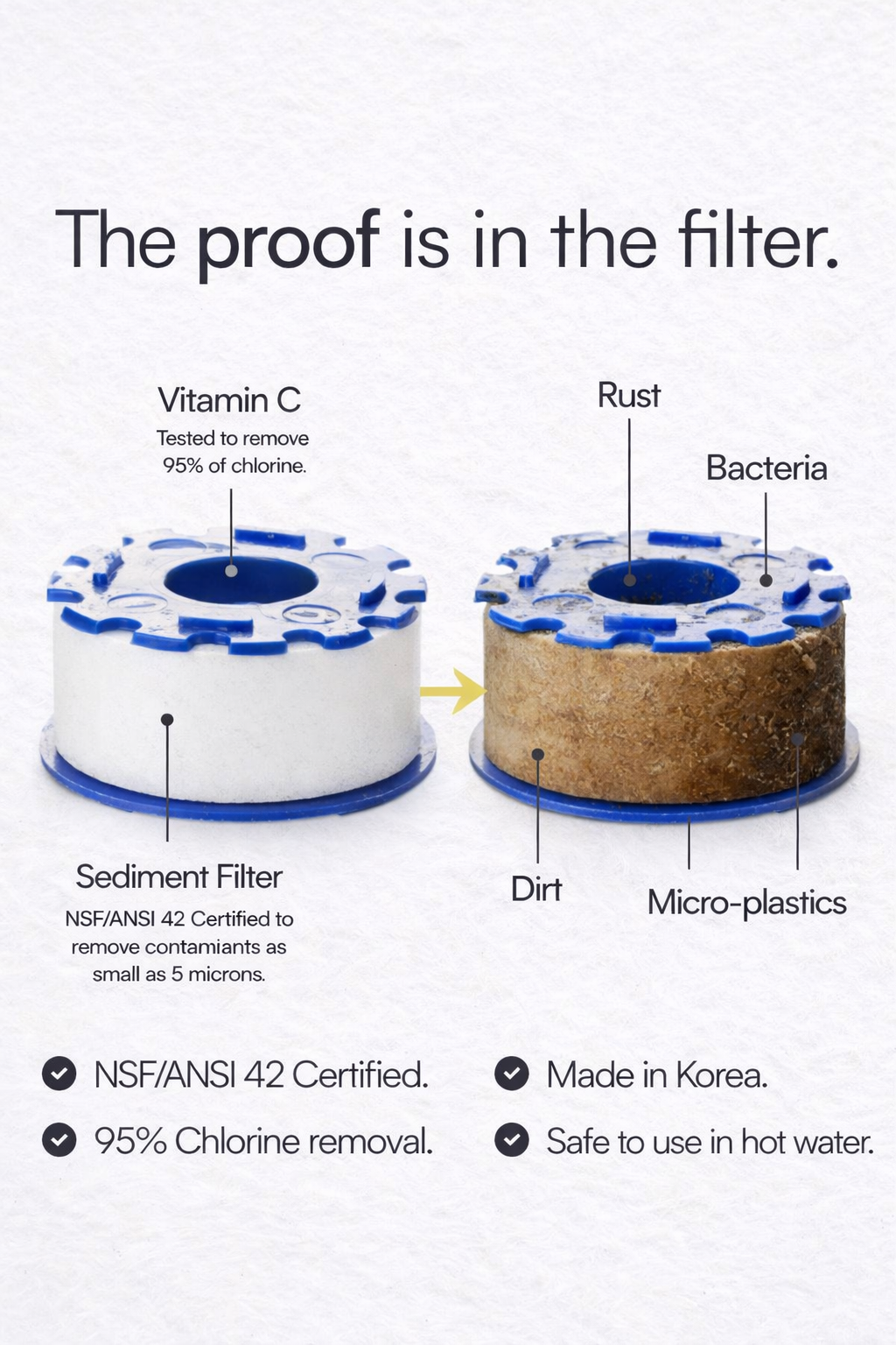- Protect your pores against the buildup of dirt and impurities lingering in your water.