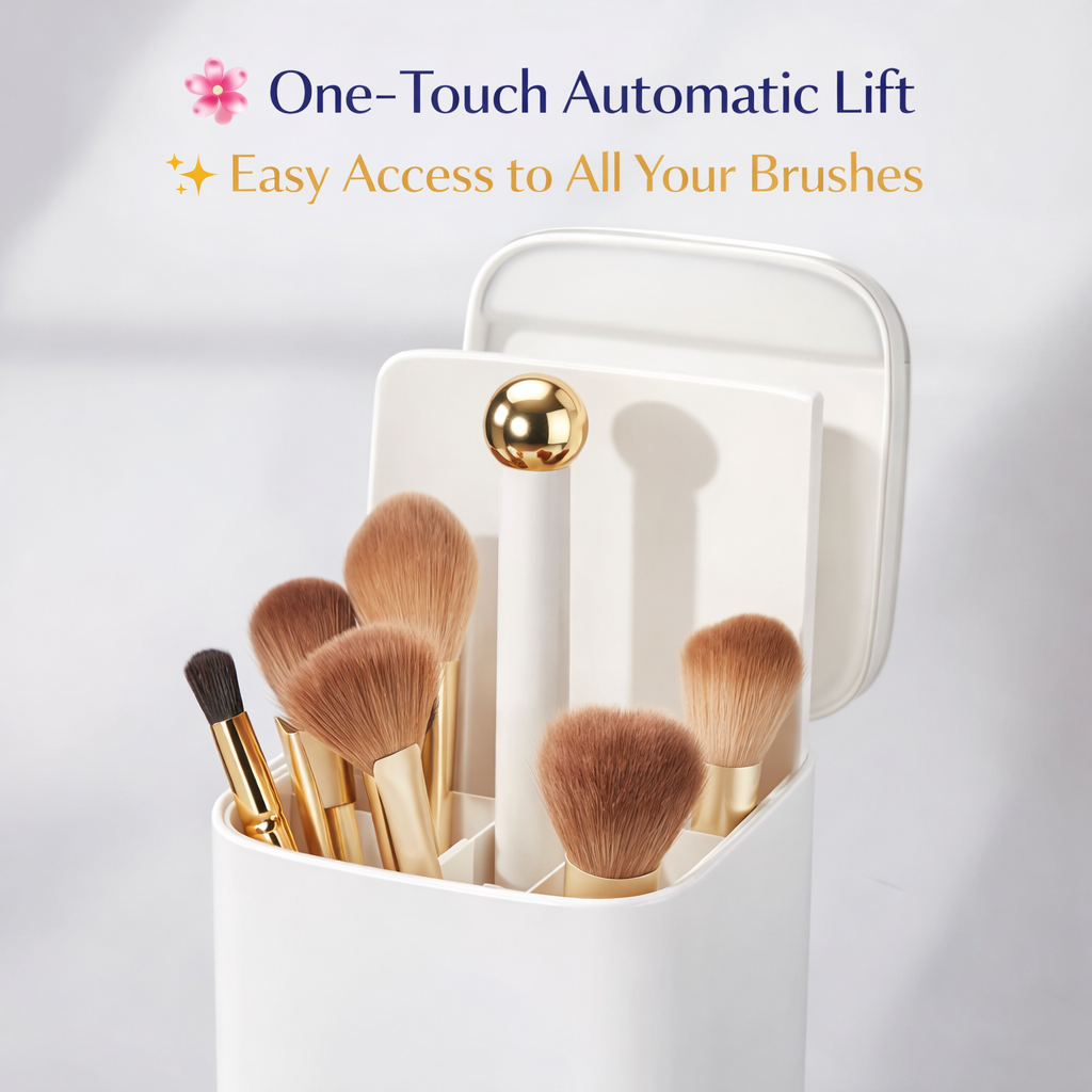 Say goodbye to messy drawers and cluttered makeup bags! With just one gentle press, this organizer automatically lifts and reveals your brushes in a smooth, elegant motion ✨. It feels like opening a treasure box of beauty every single day.