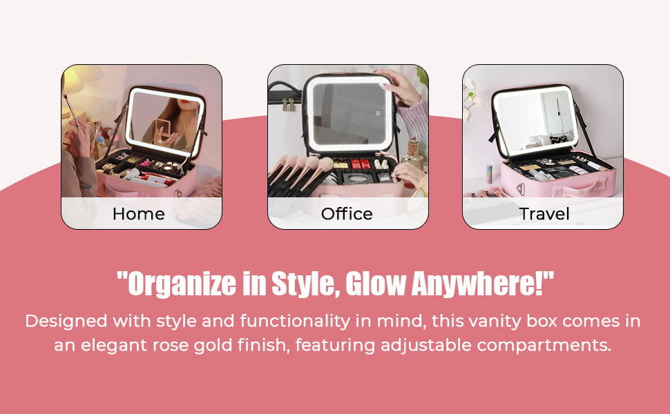 Bag with LED Mirror is designed for women who love staying polished—whether at home, traveling, or working professionally. Sleek, spacious, and thoughtfully designed, this large-capacity travel cosmetic organizer keeps your makeup perfectly organized and ready anytime, anywhere.