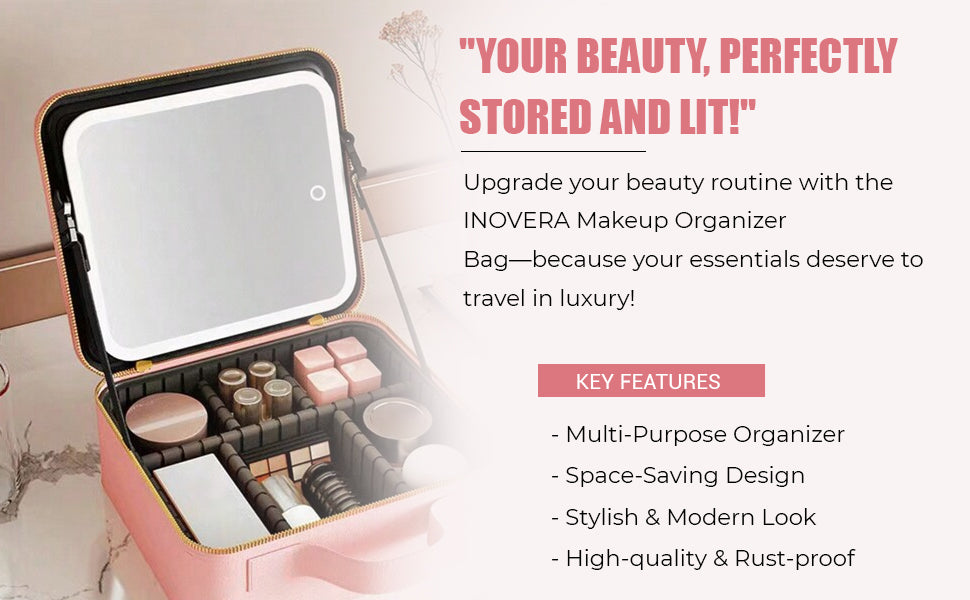 Makeup Bag with LED Mirror – The Ultimate Beauty Organizer for Women on the Go ✨