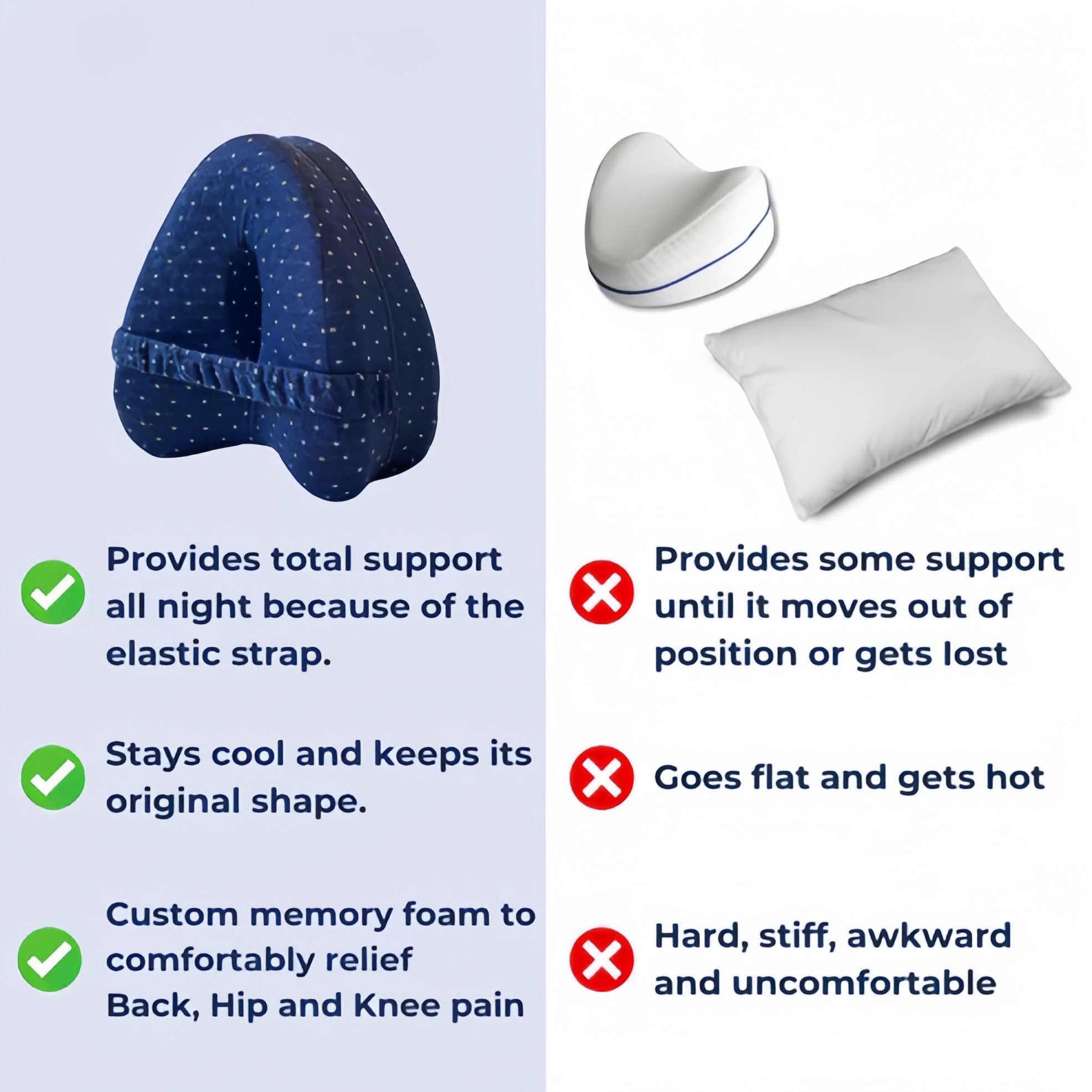 By placing the pillow between your legs, it keeps your spine, hips, and knees properly aligned. This reduces pressure on the sciatic nerve and helps relieve lower back and hip pain over time. Many users feel relief after just a few nights. ✨
